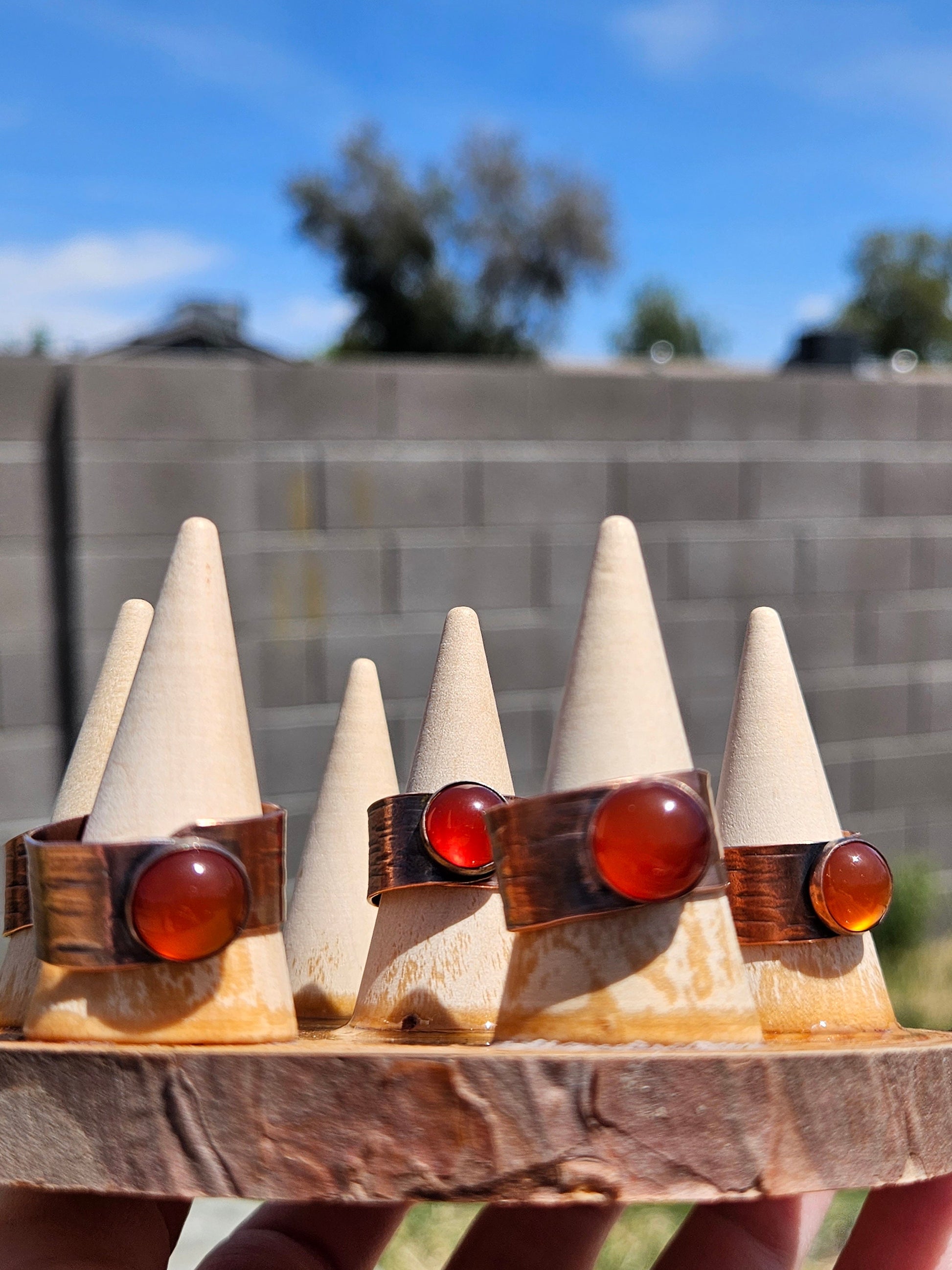 This handmade copper Tree Bark ring with red agate is sure to be a statement piece!