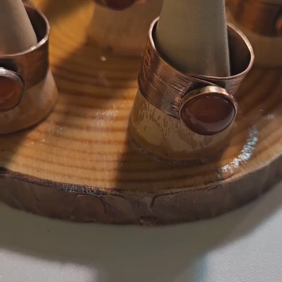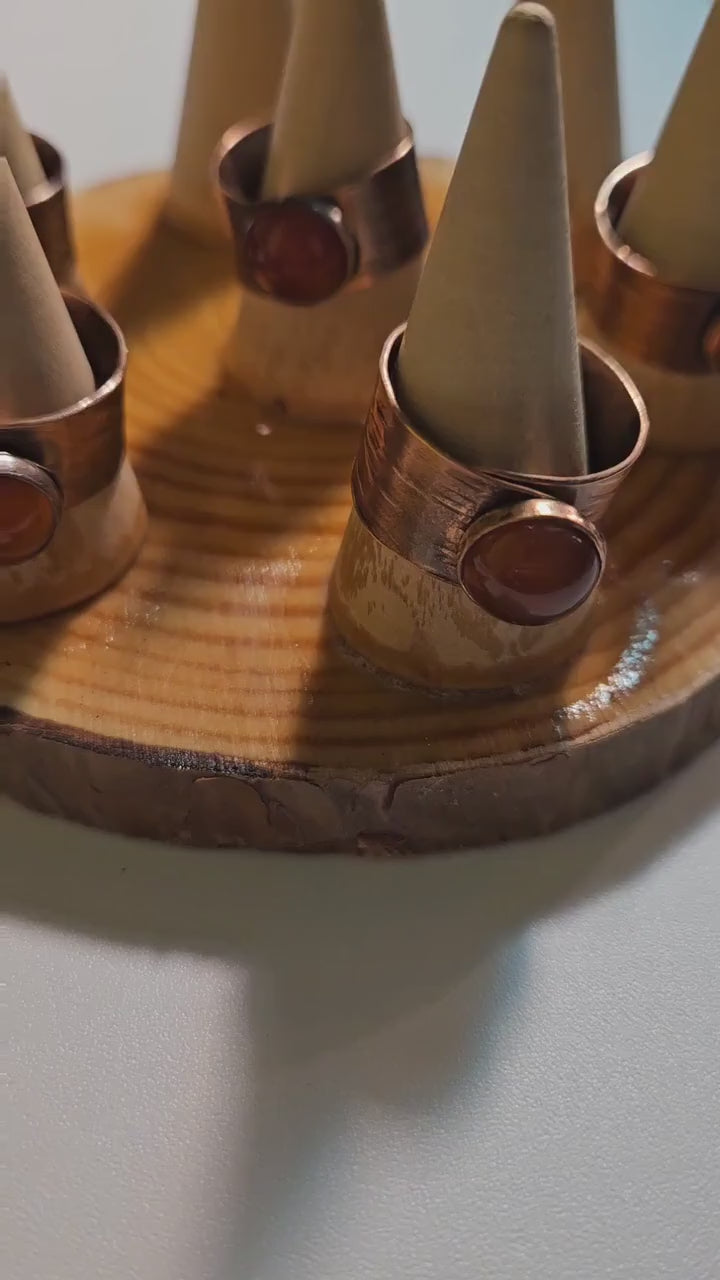 Red Agate Copper Tree Bark Ring/ Adjustable Copper Ring/ Wide Ring Band/ Rustic Copper Jewelry / Elven Soul